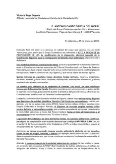 (Descarga AQUÍ el Burofax a Toni Cantó del concejal Vicente Raga)
